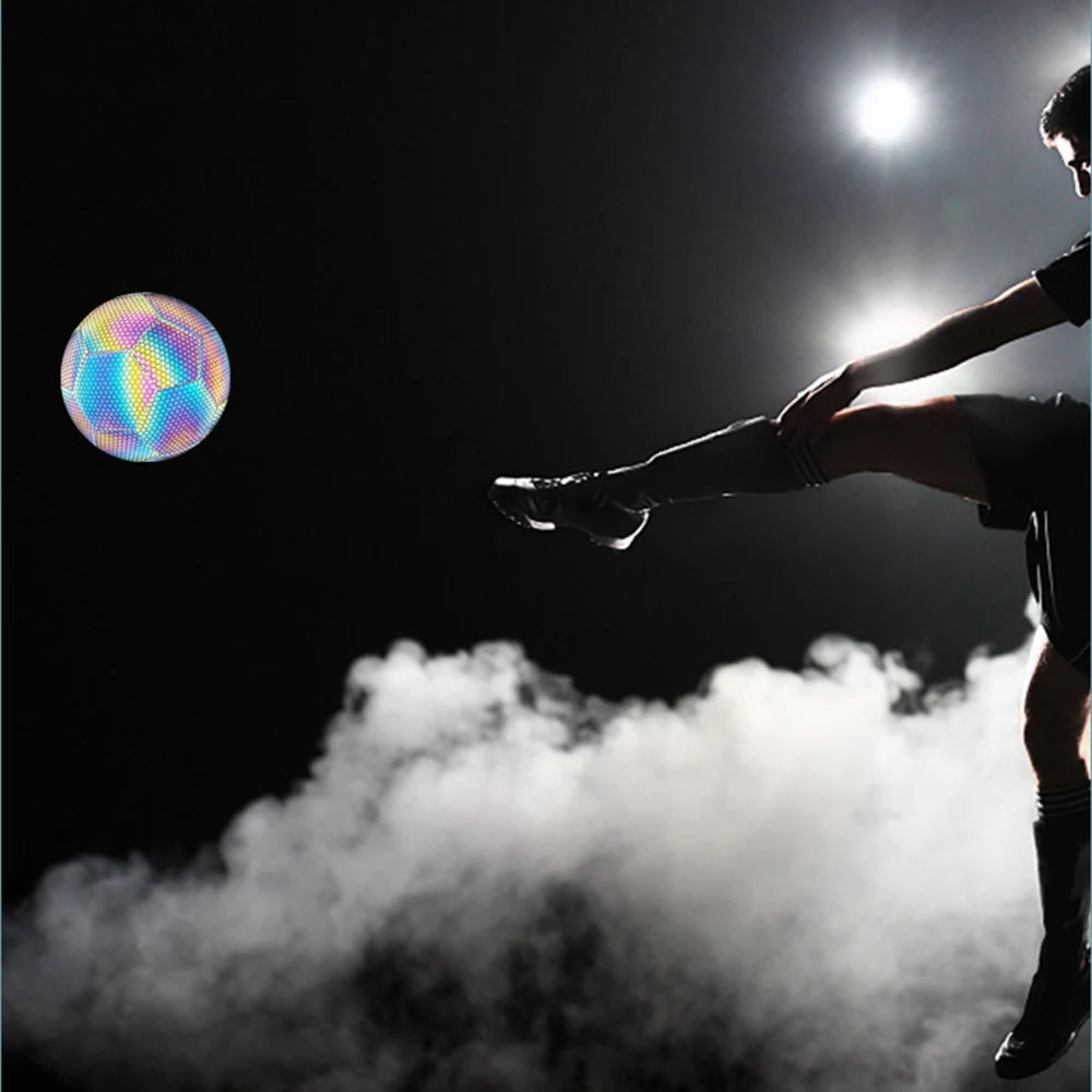 Elevate your game with the Magic Reflective Soccer Ball! Featuring cutting-edge reflective technology, this ball lights up brilliantly under camera flashes, making every shot and skill move unforgettable. Perfect for night games, social media highlights, or just standing out on the pitch. Durable, eye-catching, and ready to play. Grab yours today! Size 5.
