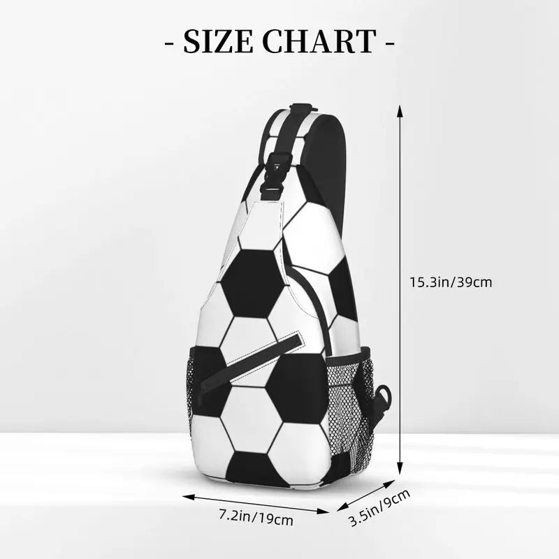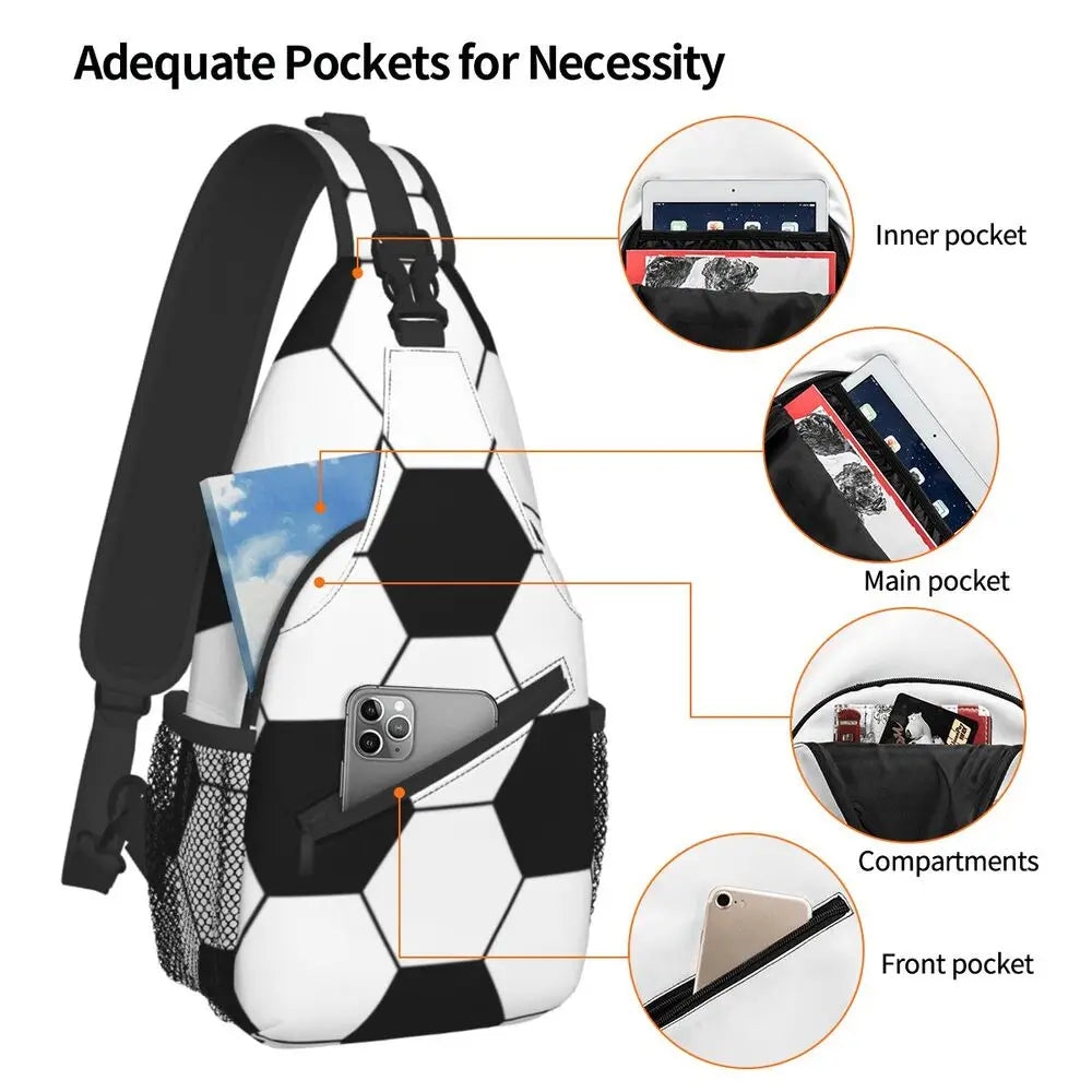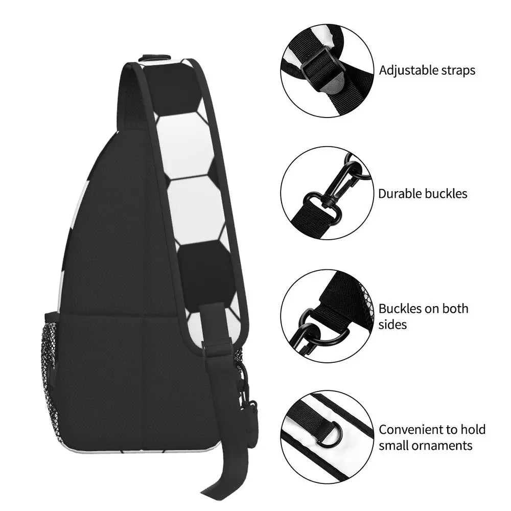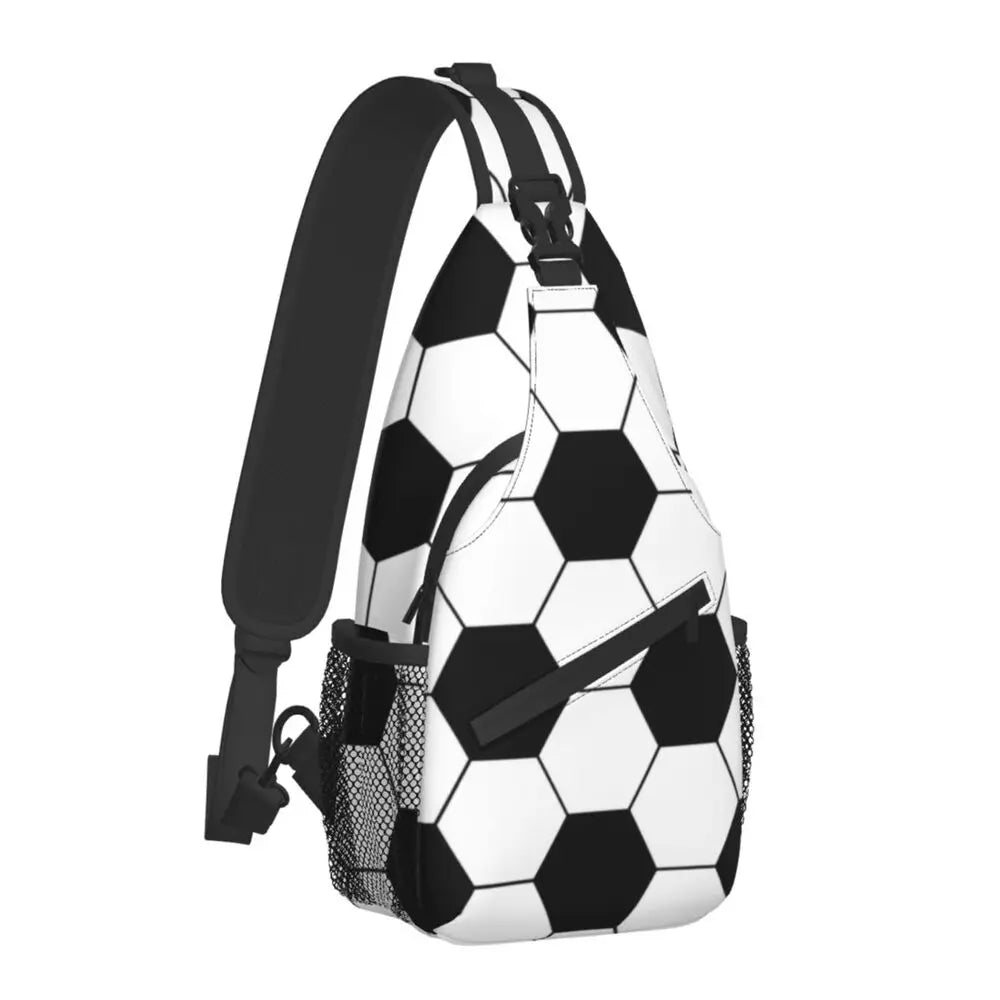 Elevate your style with this Casual Football Patterned Sling Bag, designed for traveling men who love soccer. This polyester soccer ball-themed bag features a unique hexagonal pattern, reminiscent of the classic soccer ball design. It functions as a versatile chest crossbody backpack or shoulder daypack, perfect for both daily use and travel adventures.