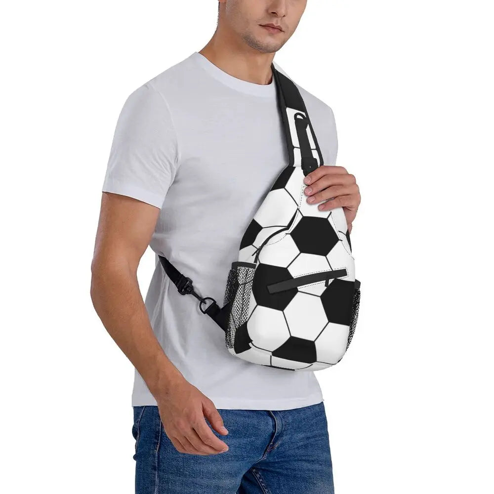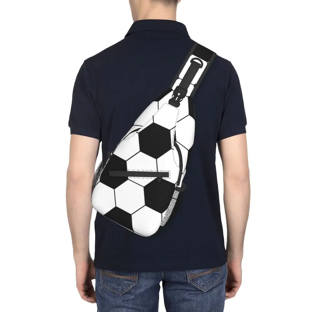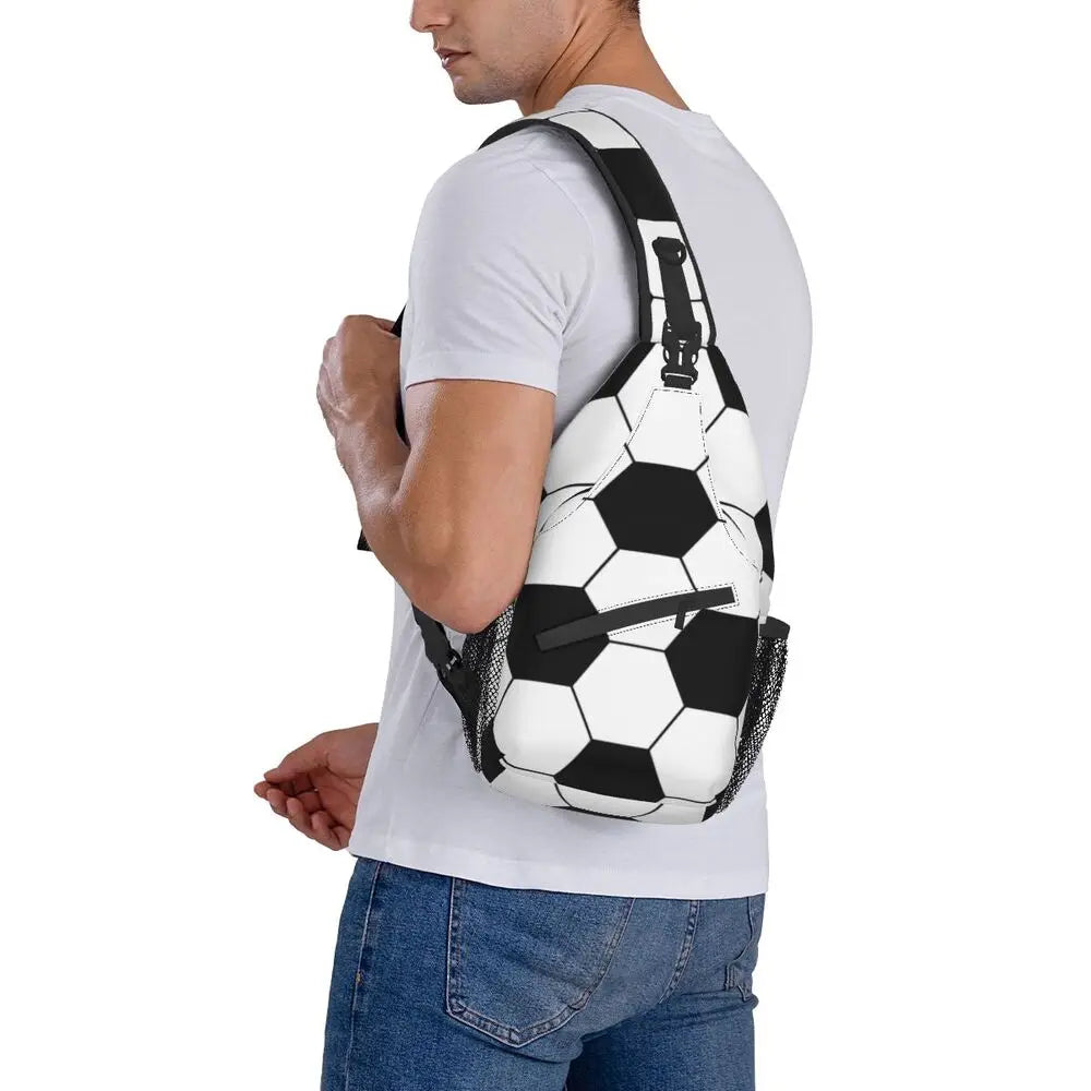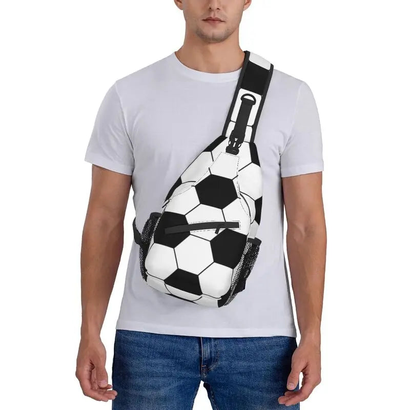 Elevate your style with this Casual Football Patterned Sling Bag, designed for traveling men who love soccer. This polyester soccer ball-themed bag features a unique hexagonal pattern, reminiscent of the classic soccer ball design. It functions as a versatile chest crossbody backpack or shoulder daypack, perfect for both daily use and travel adventures.