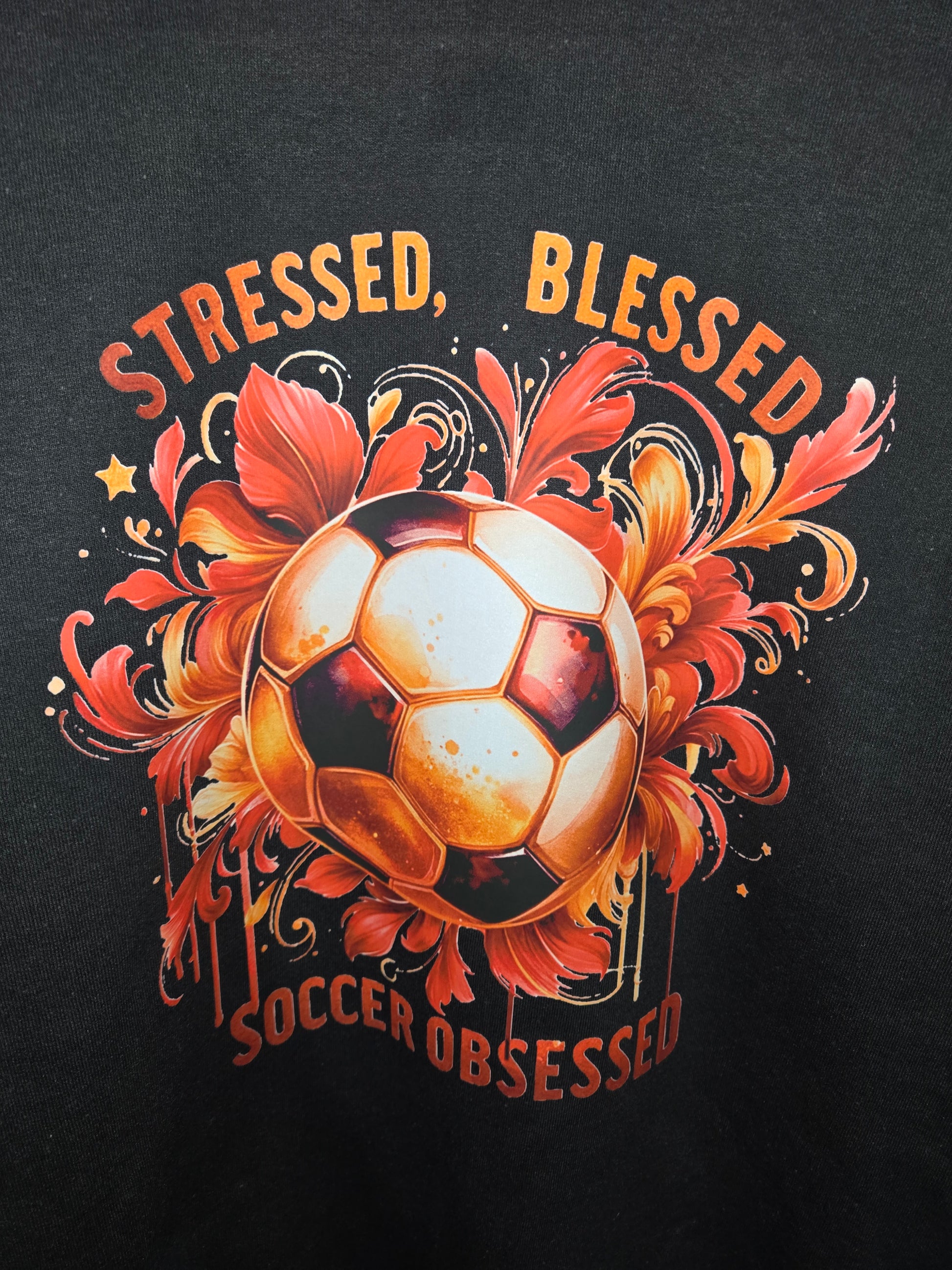 - Design: Eye-catching "Stressed, Blessed, Soccer Obsessed" graphic with a soccer-inspired logo