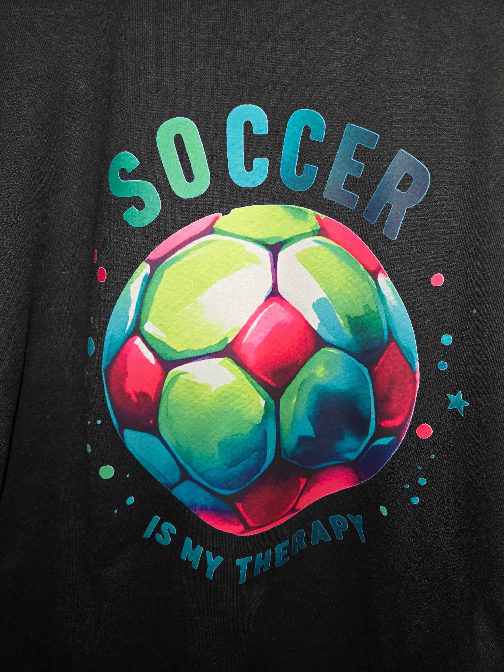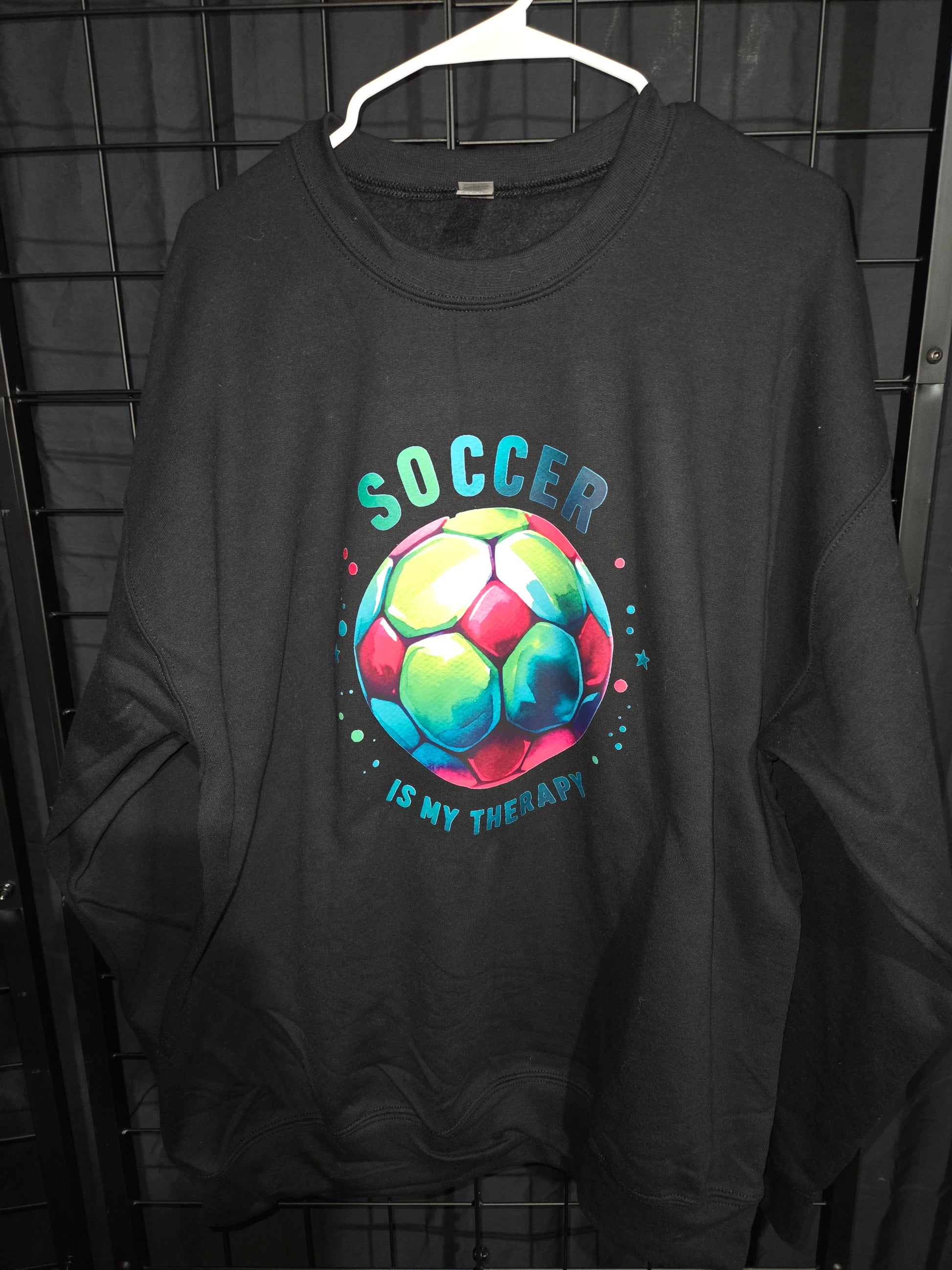 Whether you're on the pitch, in the stands, or just repping your passion, this crew sweater reminds everyone that soccer isn't just a game—it's therapy. Get yours today and wear your mantra proudly!